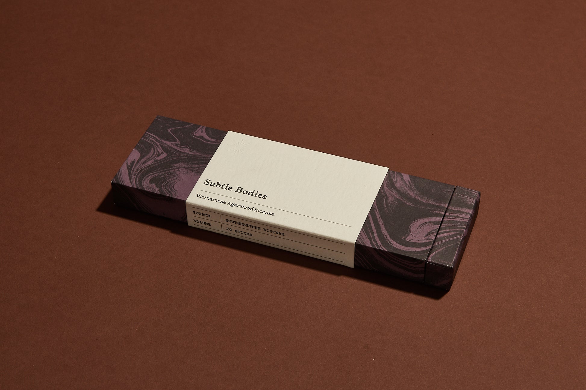All Subtle Bodies incense sticks are pure wood products with no added perfume or fragrance. Each burns with a heavy, yet delicately scented smoke trail.